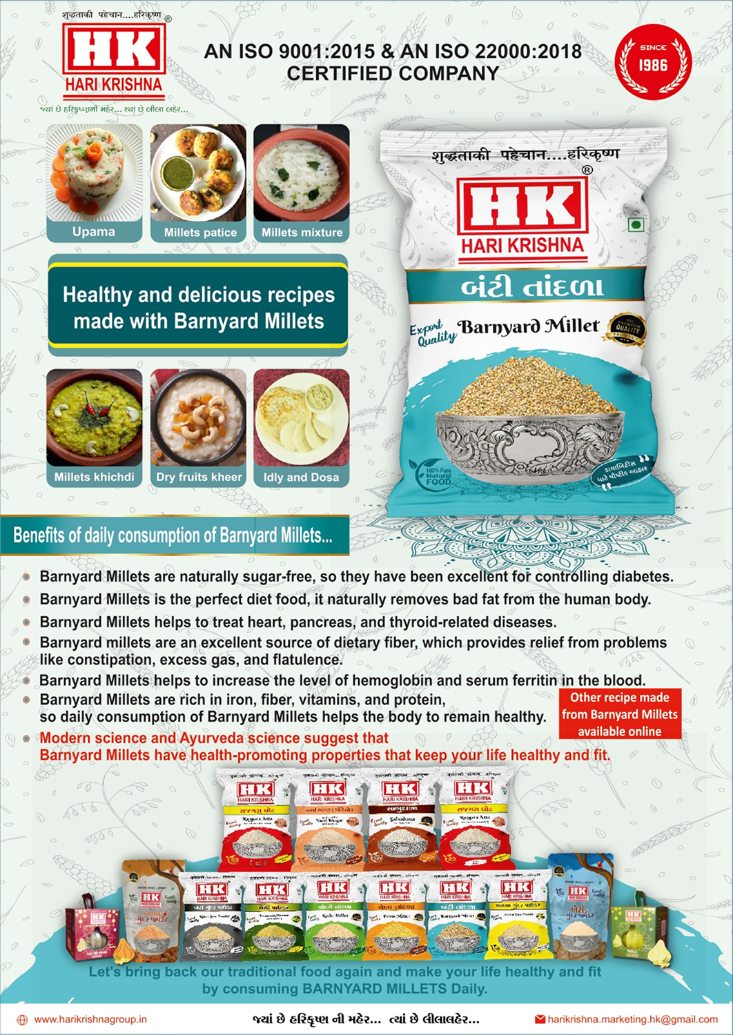 બાર્નયાર્ડ મિલેટ એ પોષક તત્વોથી ભરપૂર પ્રાચીન અનાજ છે જે તેના ઉચ્ચ ફાઇબર, પ્રોટીન અને ખનિજ સામગ્રી માટે મૂલ્યવાન છે. તે સ્વસ્થ પાચનને ટેકો આપે છે, ઉર્જા સ્તરને નિયંત્રિત કરવામાં મદદ કરે છે અને એકંદર સુખાકારીને પ્રોત્સાહન આપે છે. કુદરતી રીતે ગ્લુટેન-મુક્ત અને રાંધવામાં સરળ, તે સ્વસ્થ ભોજન અને ઉપવાસ આહાર માટે આદર્શ છે. ચોખાનો એક ઉત્તમ વિકલ્પ, બાર્નયાર્ડ મિલેટ આધુનિક સંતુલિત અને પૌષ્ટિક જીવનશૈલીમાં સંપૂર્ણ રીતે બંધબેસે છે.