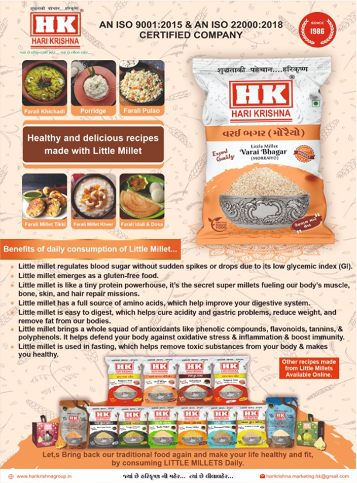 મોરૈયો એક ખૂબ જ પૌષ્ટિક અનાજ છે જે તેના હળવા પોત અને સમૃદ્ધ સ્વાસ્થ્ય લાભો માટે જાણીતું છે. પ્રોટીન, ડાયેટરી ફાઇબર, આયર્ન અને આવશ્યક ખનિજોથી ભરપૂર, તે પાચનને ટેકો આપે છે, સતત ઉર્જા પ્રદાન કરે છે અને એકંદર સુખાકારીને પ્રોત્સાહન આપે છે. કુદરતી રીતે ગ્લુટેન-મુક્ત અને રાંધવામાં સરળ, તેનો ઉપવાસ ભોજન અને સ્વસ્થ આહારમાં વ્યાપકપણે ઉપયોગ થાય છે, જે તેને સંતુલિત પોષણ માટે એક સ્વસ્થ પસંદગી બનાવે છે.