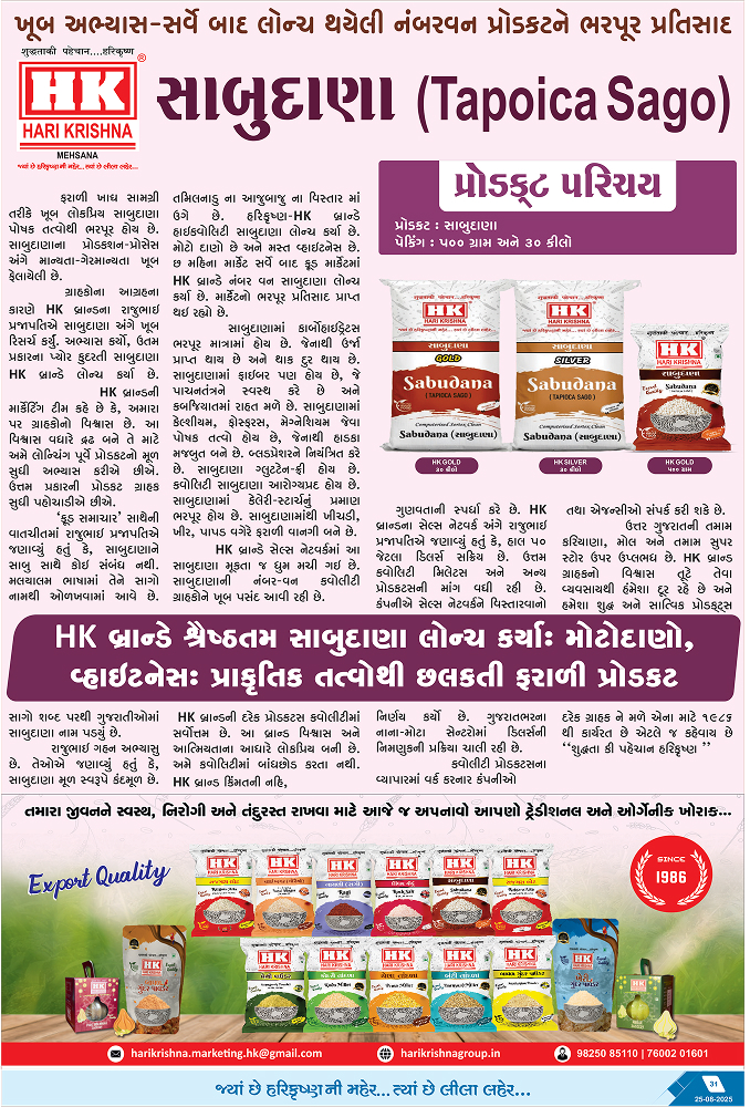 સાબુદાણા ઉચ્ચ ગુણવત્તાવાળા ટેપીઓકા સાગોમાંથી તૈયાર કરવામાં આવે છે, જે તેના હળવા પોત અને ઉર્જાથી ભરપૂર પોષણ મૂલ્ય માટે જાણીતું છે. તે ઝડપી ઉર્જા પ્રદાન કરે છે, સરળ પાચનને ટેકો આપે છે અને ઉપવાસ ભોજન અને રોજિંદા રસોઈ માટે આદર્શ છે. કુદરતી રીતે ગ્લુટેન-મુક્ત અને તૈયાર કરવામાં સરળ, સાબુદાણાનો પરંપરાગત વાનગીઓમાં વ્યાપકપણે ઉપયોગ થાય છે, જે તેને સંતુલિત આહાર માટે એક સ્વસ્થ અને બહુમુખી ઘટક બનાવે છે.